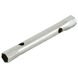De GAMMA-pijpsleutel met een maat van 10mm en 11mm is handig om moeilijk bereikbare moeren en bouten mee los of vast te schroeven. De maten 10mm en 11mm komen overeen met de metrische maten M6 en M7. De pijpsleutel bestaat uit verchroomd staal en past dus op M6- en M7-moeren. je brengt een passende stift of wringstaaf aan in de gaten van de sleutel en zo draait je met deze stalen pijpsleutel van 10mm en 11mm makkelijk diep weggestopte moeren en bouten los of vast. De pijpsleutel is te gebruiken voor moeren en bouten waar je met een andere sleutel niet bij kunt, bijvoorbeeld bougies.