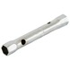 De GAMMA-pijpsleutel met een maat van 14mm en 15mm is handig om moeilijk bereikbare moeren en bouten mee los of vast te schroeven. De maten 14mm en 15mm komen overeen met de metrische maat M9. De pijpsleutel bestaat uit verchroomd staal en past dus op M9-moeren en -bouten. je brengt een passende stift of wringstaaf aan in de gaten van de sleutel en zo draait je met deze stalen pijpsleutel met een sleutelwijdte van 14mm en 15mm makkelijk diep weggestopte moeren en bouten los of vast. De pijpsleutel is zodoende te gebruiken voor moeren en bouten waar je met een andere sleutel niet bij kunt, bijvoorbeeld bougies.