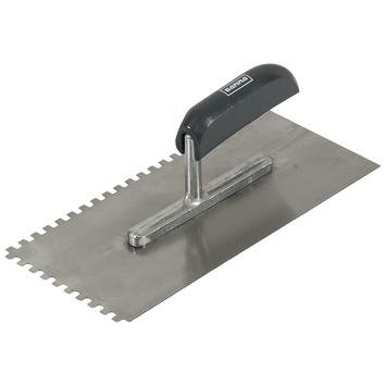 De GAMMA plakspaan is getand en heeft tanden van 6mm bij 6mm. De plakspaan is gemaakt van staal. De plakspaan met tanden is ideaal voor het aanbrengen van bouwlijm. Tijdens het werken met specie en stucmortel gebruikt je de gladde zijde van de pleisterspaan met vertanding. Bijvoorbeeldwanneer je aan de slag gaat met het aanrapen en egaliseren van wanden en vloeren. De 6mm bij 6mm metende tanden van de plakspaan zorgen voor een goede verdeling van lijm. Zoek je een andere plakspaan? GAMMA heeft ook plakspanen zonder vertanding of plakspanen van andere materialen in het assortiment.