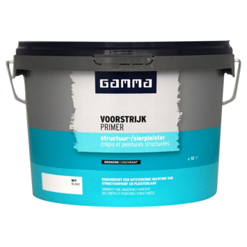 GAMMA primer structuur- en sierpleister wit 2,5 liter is een dekkende primer met een fijne structuur. Voor muren en plafonds die worden afgewerkt met structuurverf, structuurpleister of korrelpleister. Zorgt voor een uitstekende hechting van de eindlaag. Ook vermindert het de zuiging van de ondergrond. De watergedragen primer is sneldrogend. Voor binnengebruik.