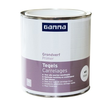De primer voor tegels in de kleur wit (750 ml) van GAMMA is een reukarme, sneldrogende en waterverdunbare grondverf, geschikt als hechtprimer op alle soorten wandtegels in toilet, keuken en badkamer. De primer kan ook worden aangebracht op harde kunststof zoals PVC afvoerbuizen en koperen leidingen. Niet geschikt voor vloertegels, oppervlakken met constante waterbelasting (bijvoorbeeld je douche) noch gebruik onder water. Ideaal als grondlaag voor afwerking met GAMMA lakverf op waterbasis. Voor gebruik binnenshuis.