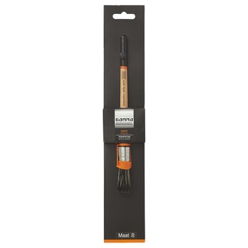De GAMMA Professional borstel rond voor solventgedragen verf maat 8 is een ronde verfborstel die je gebruikt voor verf op solventbasis. Met een breedte van 8 millimeter is deze borstel geschikt voor fijn detailwerk zoals hoeken, randjes of moeilijk bereikbare plekken. Je gebruikt hem op gladde en ruwe ondergronden zoals hout, kunststof en metaal. De haren zijn een combinatie van natuurlijk en synthetisch materiaal en zorgen voor een goede opname van de verf en een gelijkmatige verdeling zonder haarverlies. De houten steel ligt goed in de hand en de haren zijn stevig vastgezet in een roestvrije metalen bus zodat je de borstel opnieuw kan gebruiken. Je gebruikt deze verfborstel voor vernis, beits of muurverf op solvent- of oliebasis.