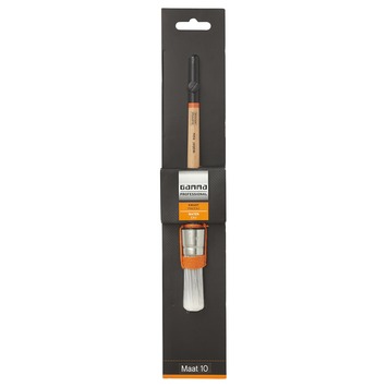 De GAMMA Professional borstel rond voor watergedragen verf maat 10 is een ronde borstel die je gebruikt met verf op waterbasis. Met een diameter van 10 mm is ze geschikt voor kleinere oppervlakken en detailwerk. Je kunt de borstel toepassen op hout, kunststof en metaal zowel op gladde als op ruwe ondergronden. De synthetische haren nemen veel verf op en verdelen die egaal zodat je een gelijkmatige verflaag krijgt. De haren vallen niet uit en zijn eenvoudig schoon te maken waardoor je de borstel vaker kunt gebruiken. De bus is van roestvrij staal waardoor de haren stevig vastzitten en de borstel lang meegaat.