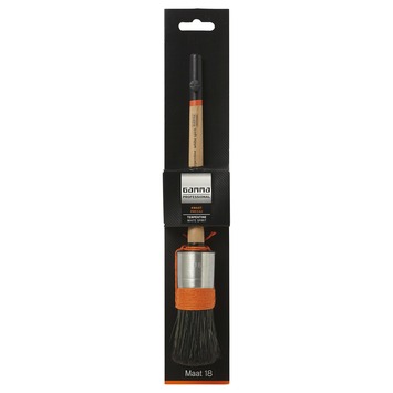 De GAMMA Professional lakborstel rond voor solventgedragen verf maat 18 is een ronde verfborstel die je gebruikt voor verf op solventbasis. Met een breedte van 18 millimeter is deze borstel geschikt voor nauwkeurig schilderwerk aan randen, profielen of kleinere oppervlakken. Je gebruikt hem op gladde en ruwe ondergronden zoals hout, metaal en kunststof. De haren zijn een mix van natuurlijk en synthetisch materiaal en zorgen voor een goede opname en een gelijkmatige verdeling van de verf zonder haarverlies. De houten steel ligt stevig in de hand en de haren zitten vast in een roestvrije metalen bus waardoor je de borstel opnieuw kan gebruiken. Je gebruikt deze verfborstel voor vernis, beits of muurverf op solvent- of oliebasis.