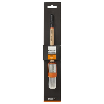 De GAMMA Professional lakborstel rond voor watergedragen verf maat 14 is een ronde verfborstel die je gebruikt voor verf op waterbasis. Met een breedte van 14 millimeter is deze borstel geschikt voor detailwerk zoals hoeken, randen of kleinere onderdelen. Je kan hem gebruiken op gladde en ruwe ondergronden zoals hout, kunststof en metaal. De synthetische haren nemen veel verf op en zorgen voor een gelijkmatige afwerking zonder dat er haren loskomen tijdens het schilderen. De houten steel ligt goed in de hand en de haren zitten stevig vast in een roestvrije metalen bus zodat je de borstel opnieuw kan gebruiken. Je gebruikt deze verfborstel voor muurverf, beits of vernis op waterbasis.