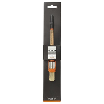 De GAMMA Professional muurverfborstel maat 10 rond is een ronde verfborstel die je gebruikt voor verf op waterbasis. Met een breedte van 10 millimeter is deze borstel geschikt voor kleine oppervlakken en detailwerk op muren of plafonds. Je gebruikt hem op gladde en ruwe ondergronden zoals stucwerk, gips of hout. De synthetische haren nemen veel verf op en geven die gelijkmatig af zodat je netjes en zonder strepen kan schilderen. De houten steel ligt goed in de hand en maakt gecontroleerd werken makkelijk. Je gebruikt deze verfborstel voor muurverf, structuurverf, voorstrijkmiddel of beits op waterbasis.