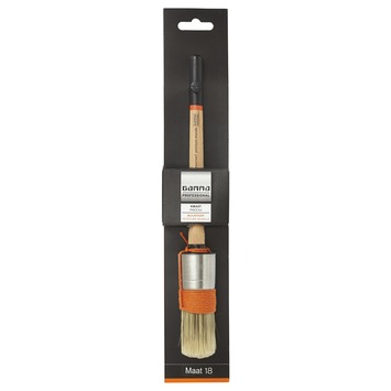 De GAMMA Professional muurverfborstel maat 18 rond is een ronde borstel die je gebruikt met verf op waterbasis. Met een diameter van 18 millimeter leent hij zich goed voor het schilderen van kleinere oppervlakken of voor detailwerk aan muren en plafonds. Je kan de borstel inzetten op stuc of pleisterwerk, gips en hout en dat op zowel gladde als ruwe ondergronden. De synthetische haren zorgen voor een vlotte opname van de verf en geven die gelijkmatig weer af. Dankzij de ronde vorm werk je precies en gecontroleerd. De houten steel geeft een stevige houvast waardoor je comfortabel kan schilderen.