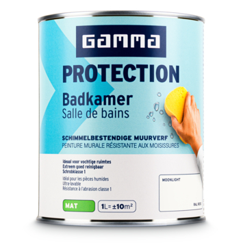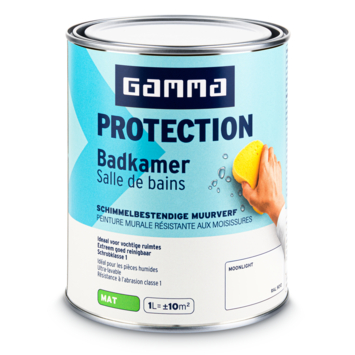 Met GAMMA Protection badkamer muurverf moonlight RAL 9010 mat 1 liter schilder je muren die dagelijks te maken krijgen met vocht en temperatuurschommelingen. Deze verf is door GAMMA ontwikkeld met een Protection technologie die een beschermende laag vormt. Die laag helpt schimmelvorming tegen te gaan en maakt de muur beter bestand tegen intensief gebruik in de badkamer.