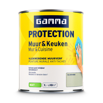 Met GAMMA Protection muur & keuken muurverf silver moss mat 1 liter schilder je binnenmuren die regelmatig vuil worden. Deze verf is uitgerust met de speciaal door GAMMA ontwikkelde Protection technologie. Die zorgt ervoor dat vlekken minder snel in de muur trekken en helpt de afwerking langer intact te houden, ook in ruimtes zoals de keuken.