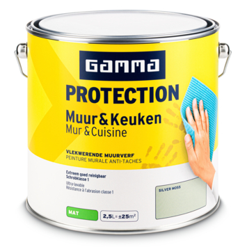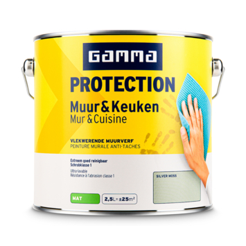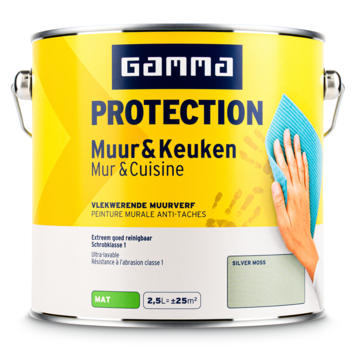 Met GAMMA Protection muur & keuken muurverf silver moss mat 2,5 liter schilder je binnenmuren die regelmatig vuil worden. Deze verf is uitgerust met de speciaal door GAMMA ontwikkelde Protection technologie. Die zorgt ervoor dat vlekken minder snel in de muur trekken en helpt de afwerking langer intact te houden, ook in ruimtes zoals de keuken.
