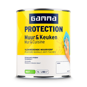 Met GAMMA Protection muur & keuken muurverf snow RAL 9003 mat 1 liter schilder je binnenmuren die regelmatig vuil worden. Deze verf is uitgerust met de speciaal door GAMMA ontwikkelde Protection technologie. Die zorgt ervoor dat vlekken minder snel in de muur trekken en helpt de afwerking langer intact te houden, ook in ruimtes zoals de keuken.
