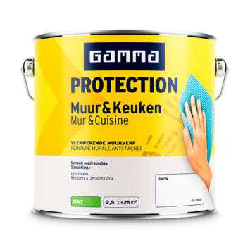 Met GAMMA Protection muur & keuken muurverf snow RAL 9003 mat 2,5 liter schilder je binnenmuren die regelmatig vuil worden. Deze verf is uitgerust met de speciaal door GAMMA ontwikkelde Protection technologie. Die zorgt ervoor dat vlekken minder snel in de muur trekken en helpt de afwerking langer intact te houden, ook in ruimtes zoals de keuken.
