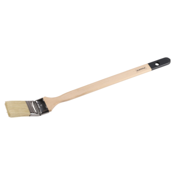 De GAMMA radiatorborstel voor watergedragen verf 50 mm is een lange, platte verfborstel die je gebruikt voor verf op waterbasis. Met een breedte van 50 millimeter is deze borstel geschikt voor grotere vlakken op moeilijk bereikbare plaatsen zoals achter radiatoren of rond raamkozijnen. Je gebruikt hem op gladde en ruwe ondergronden zoals MDF of staal. De haren bestaan uit een mix van synthetisch en natuurlijk materiaal waardoor ze veel verf opnemen en die gelijkmatig verdelen zonder haarverlies. De houten steel ligt stevig in de hand en helpt je om ook lastige plekken goed te bereiken. Je gebruikt deze radiatorborstel voor muur- en plafondverf op waterbasis.