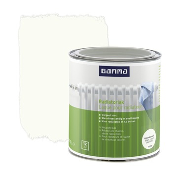 GAMMA radiatorlak is een niet vergelende hoogglanzende lak voor het afwerken van radiatoren en verwarmingsbuizen. De lak is warmtebestendig en sneldrogend. Daarnaast is de lak watergedragen en dus reukarm. De lak is binnen te gebruiken.