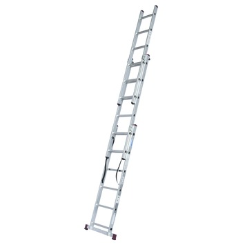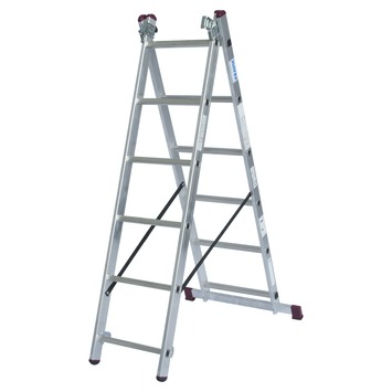 De reformladder 3 x 6 treden van GAMMA is een verstelbare ladder, die je makkelijk kan uitschuiven en inschuiven. De lichte maar stevige aluminium ladder telt 3 delen en 6 treden in de basisopstelling. De dwarse stabiliteitsbalk zorgt voor extra stabiliteit, zodat je zonder vrees kan klussen. Goed om te weten: de uitgeschoven lengte van deze trap is 365 centimeter, de opberglengte is slechts 170 centimeter. Ook verkrijgbaar met 3 x 8 of 10 treden.