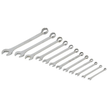 De GAMMA-ring-steeksleutelset bevat gecombineerde ring-steeksleutels met maten van 6mm tot 22mm. Deze maten komen overeen met de metrische maten M4 tot M22. Hierdoor is de set met ring-steeksleutels van 6mm tot 22mm bruikbaar voor het los- en vastschroeven van moeren en bouten van verschillende afmetingen. De ring-steeksleutels zijn allen gemaakt van hoogwaardig chroom-vanadiumstaal. In de handige cassette berg je de stevige combinatiesleutels goed en overzichtelijk op. Zo heb je de ring-steeksleutelset met alle maten steek- en ringsleutels, van 6mm tot 22mm, direct beschikbaar.