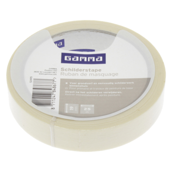 De GAMMA schilderstape 19 mm x 25 m is een afplaktape die je binnenshuis gebruikt en die geschikt is voor vlakke ondergronden. De tape is gemaakt van papier waardoor hij eenvoudig te hanteren is bij schilderwerken. Je kan de tape met de hand afscheuren zodat je snel een stuk op maat hebt. Na het schilderen verwijder je de tape meteen zodat de ondergrond proper blijft en je schilderwerk netjes afgewerkt is.