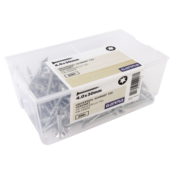 Deze platkopschroeven van GAMMA zijn gemaakt van verzinkt staal en universeel te gebruiken. De schroef is van het type T20, met een platverzonken kop en een torx-aandrijving. De schroef heeft draad over de hele lengte, en geeft daarmee veel grip in de materie. De voldraadschroef is voorzien van een waslaag voor een betere verwerking. De verpakking bevat schroeven met een lengte van 30mm en een diameter van 4mm. De schroeven zijn zowel binnen als buiten te gebruiken in spaanplaat en hout. Eén verpakking bevat 200 stuks.
