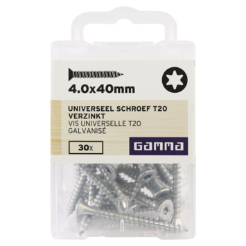 GAMMA schroef universeel 4,0x40 mm torx platkop verzinkt 30 stuks5.49