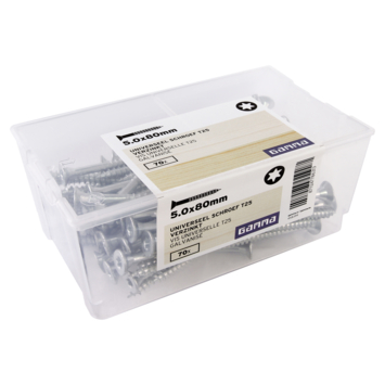 Deze platkopschroeven van GAMMA zijn gemaakt van verzinkt staal en universeel te gebruiken. De schroef is van het type T25, met een platverzonken kop en een torx-aandrijving. Je kan de schroef dus goed indraaien met een torx-schroevendraaier. De deeldraadschroef is voorzien van een waslaag voor een betere verwerking. De verpakking bevat schroeven met een lengte van 80mm en een diameter van 5mm. De schroeven zijn zowel binnen als buiten te gebruiken in spaanplaat en hout. Eén verpakking bevat 70 stuks.