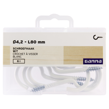 GAMMA Schroefhaak 4,2mm - 80mm wit 6 stuks