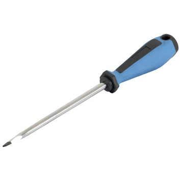 De GAMMA schroevendraaier SL6mm is gemaakt van chroom-vanadiumstaal, sterk materiaal waardoor de schroevendraaier praktisch onbreekbaar is. Met deze sleufkopschroevendraaier schroef je sleufkopschroeven stevig vast of eenvoudig los. De schroevendraaier heeft een platte kop en is daarmee geschikt voor het schroeven van sleufkopschroeven. Hiervoor staat de afkorting SL. De platte schroevendraaier heeft een bledbreedte van 6mm en een stiftlengte van 100mm, maar is bij GAMMA ook in andere maten en soorten verkrijgbaar. De SL-schroevendraaier van 6mm heeft een ergonomische handgreep met antislip die fijn in de hand ligt en je optimale grip biedt tijdens het schroeven.