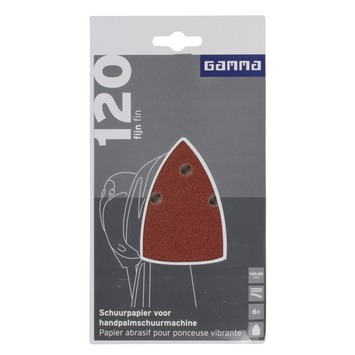 Het GAMMA schuurpapier 80x140mm is uitermate geschikt voor het schuren van oppervlakten. Dit schuurpapier heeft korrelgrootte/ grit K120 (fijn). Het schuurpapier bevat klittenband en is geschikt voor een handpalmschuurmachine. De verpakking bevat 6 vellen.
