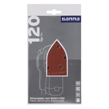 Het Gamma schuurpapier 150x105mm geperforeerd is geschikt voor het schuren van oppervlakten. Dit schuurpapier heeft korrelgrootte K120 (fijn). Het schuurpapier is geschikt voor de Bosch PSM schuurmachine. De verpakking bevat 6 vellen.