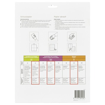 Het GAMMA schuurpapier voor de complete klus bevat diversen korrelgroottes en is geschikt voor complete schuurklussen waaronder het opschuren tussen verschillende verf- en laklagen op hout, metaal of kunststof. Tip: je kan het schuurpapier zowel met de hand, als op een schuurmachine gebruiken. Deze set bevat 10 verschillende schuurvellen in de korrelgrote 80, 120 en 240.