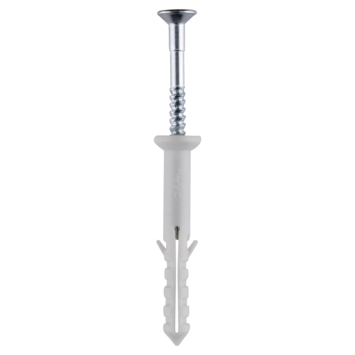 De GAMMA Slagplug nylon Ø 5x40mm met schroef is geschikt voor toepassing op verschillende soorten materialen zoals beton, wandverbinding en metaal. Nagelpluggen zijn zeer geschikt voor het monteren van houten regelwerk (zoals plinten). De werkwijze is anders dan bij een gewone plug en daarom is deze plug ook wel bekend als spijkerplug of nagelplug. Je slaat de plug namelijk met een hamer in het boorgat. Gebruik voor het boren van het gat een boor met een doorsnede van 5mm. De plug is 40mm lang. Bijpassende schroeven zijn 45mm lang en hebben een doorsnede van Ø 3,3 mm. Een verpakking bevat 25 slagpluggen.