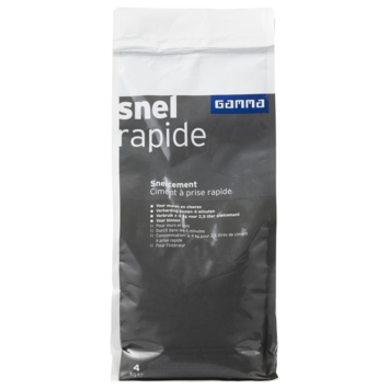 Wanneer u snelle reparaties moet doen aan steenachtige ondergronden, gebruikt u GAMMA Snelcement 4 kg. Het cement is makkelijk te verwerken, binnen vijf minuten klaar je je klus. Dit komt doordat het cement snel verhard. Daardoor is GAMMA Snelcement geschikt voor bijvoorbeeld het repareren van gaten en scheuren in vloeren, muren of ander metselwerk. Maar ook om trapleuningen en leidingen mee vast te zetten. Of om schuttingpalen of betonpoeren stevig in de grond te bevestigen. Kortom, GAMMA Snelcement Grijs is multifunctioneel en voor meerdere doe-het-zelf-klussen te gebruiken. Inhoud: 4kg.