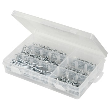 Dit GAMMA spijkerassortiment bevat 1000 stuks verzinkte spijkers, oftewel draadnagels, met platte kop. Kwaliteitsvolle spijkers of nagels die voor meerdere doeleinden geschikt zijn. In de verpakking vind je de volgende maten spijkers met platte koppen: 1.0x15mm, 1.2x20mm, 1.6x25mm, 1.8x30mm, 2.0x40mm en 2.7x55mm. Deze platkop spijkers en nagels zijn geschikt voor toepassing in verschillende soorten hout. Naast dit assortiment met 1000 verzinkte spijkers platkop vind je in GAMMA's assortiment ook spijkers en nagels met een andere kopvorm, zoals nagels met een verzonken kop, bolkop, verloren kop en lenskop.