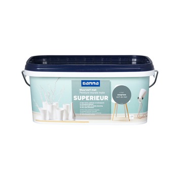 De Superieur matte muurverf (2,5 liter) van GAMMA is watergedragen verf om je muren, plafonds en buitengevels in een nieuw jasje te steken. Welk jasje? Een mat jasje in de kleur zeegroen dat niet alleen uitstekend dekt, maar ook nog eens afwasbaar is. Wat wil je nog meer? Een voordelige prijs? Bij deze! Tip: verkrijgbaar in verschillende hoeveelheden én kleuren. Combineer met afplaktape en verfborstels die geschikt zijn voor je verfkeuze (nl. watergedragen).