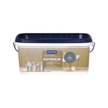 De GAMMA Superieur zijdematte muurverf is een kwalitatief hoogwaardige, uitstekend dekkende en zeer goed afwasbare watergedragen verf. De zijdematte muurverf in de kleur asfalt (2,5 liter) zorgt voor een egale en gladde afwerking, die nog versterkt wordt dankzij het gebruik van kwalitatief verfgereedschap. De verf is universeel toepasbaar voor het schilderen van muren en plafonds in je living, slaapkamer, hal maar ook garages en kelders. Ook buiten te gebruiken voor het schilderen van muren en gevels. Met deze verf haal je een ademende, weersbestendige, reukarme én spatarme verf in huis.