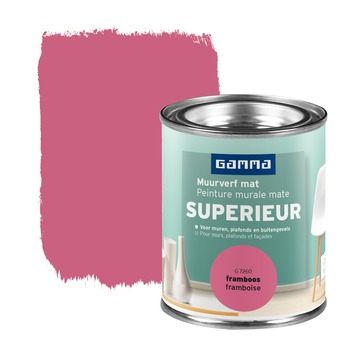 De GAMMA Superieur matte muurverf is een kwalitatief hoogwaardige, uitstekend dekkende en zeer goed afwasbare watergedragen verf. De matte muurverf in de kleur framboos (100 ml) zorgt voor een egale en gladde afwerking, die nog versterkt wordt dankzij het gebruik van kwalitatief verfgereedschap. De verf is universeel toepasbaar voor het schilderen van muren en plafonds in je living, slaapkamer, hal maar ook garages en kelders. Ook buiten te gebruiken voor het schilderen van muren en gevels. Met deze verf haal je een ademende, weersbestendige, reukarme én spatarme verf in huis.