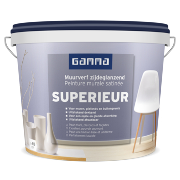 De GAMMA Superieur muurverf is een kwalitatief hoogwaardige, uitstekend dekkende en zeer goed afwasbare watergedragen verf. De matte muurverf zorgt voor een egale en gladde afwerking, die nog versterkt wordt dankzij het gebruik van kwalitatief verfgereedschap. De verf is universeel toepasbaar voor het schilderen van muren en plafonds in je woonkamer, slaapkamer, hal evenals garages en kelders. Ook buiten te gebruiken voor het schilderen van muren en gevels. Met deze verf haal je een ademende, weersbestendige, reukarme én spatarme verf in huis.