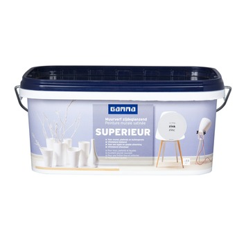 De GAMMA Superieur zijdeglans muurverf is een kwalitatief hoogwaardige, uitstekend dekkende en zeer goed afwasbare watergedragen verf. De zijdeglanzende muurverf in de kleur zink (2,5 liter) zorgt voor een egale en gladde afwerking, die nog versterkt wordt dankzij het gebruik van kwalitatief verfgereedschap. De verf is universeel toepasbaar voor het schilderen van muren en plafonds in je living, slaapkamer, hal maar ook garages en kelders. Ook buiten te gebruiken voor het schilderen van muren en gevels. Met deze verf haal je een ademende, weersbestendige, reukarme én spatarme verf in huis.