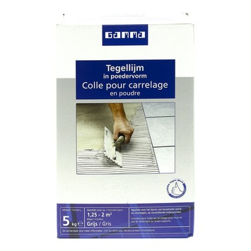 De tegellijm in poedervorm (5 kilogram) van GAMMA is geschikt voor het verlijmen van keramische wand- en vloertegels op verschillende ondergronden binnenshuis.