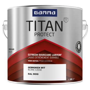 De GAMMA Titan Protect buitenlak biedt de beste bescherming voor je huis. Deze hoogglans verf, op basis van siliconen alkydhars, maakt je kozijnen, deuren, gevelbetimmering en dakranden bestand tegen de steeds extremere weersinvloeden, zoals felle zon, keiharde hagel, stromende regen en stevige wind. De lak is te gebruiken als mooie afwerking van nieuw onbehandelde delen, maar ook op bestaand schilderwerk.