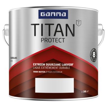 De GAMMA Titan Protect buitenlak biedt de beste bescherming voor je huis. Deze hoogglans verf, op basis van siliconen alkydhars, maakt je kozijnen, deuren, gevelbetimmering en dakranden bestand tegen de steeds extremere weersinvloeden, zoals felle zon, keiharde hagel, stromende regen en stevige wind. De lak is te gebruiken als mooie afwerking van nieuw onbehandelde delen, maar ook op bestaand schilderwerk. Voor een optimaal resultaat van de GAMMA Titan buitenlak behandel je de ondergrond eerst met de GAMMA Titan Protect grondverf, je schilderwerk is dan tot wel 8 jaar beschermd. Drie uur na het aanbrengen van de verf is deze reeds stofdroog, na 20 uur kan je de volgende laag aanbrengen. De lak is eenvoudig aan te brengen met een kwast of lakroller op solventbasis