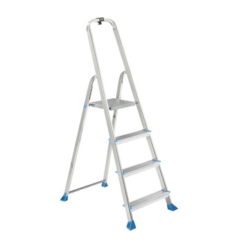 De huishoudtrappen van van Gamma zijn licht, handig en verkrijgbaar in verschillende groottes. Deze trap heeft een uitgeschoven lengte van 142 cm, een werkhoogte van 278,5 cm en 4 treden met anti-slip. Gemaakt uit aluminium met kunststof pootjes voor extra standvastigheid. Leuke extra van GAMMA: een clip om je verfpot of ander klusgerei aan te hangen.