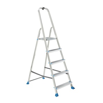 De huishoudtrappen van van Gamma zijn licht, handig en verkrijgbaar in verschillende groottes. Deze trap heeft een uitgeschoven lengte van 163,5 cm, een werkhoogte van 300 cm en 5 treden met anti-slip. Gemaakt uit aluminium met kunststof pootjes voor extra standvastigheid. Leuke extra van GAMMA: een clip om je verfpot of ander klusgerei aan te hangen.
