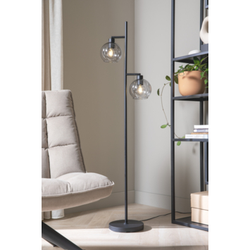 De vloerlamp Esfera van GAMMA is speciaal ontworpen voor gebruik met een E27 lamp. De lamp heeft een afmeting van 150 cm in hoogte en 25 cm in diameter en heeft een elegante zwarte afwerking. De lamp beschikt over twee lichtpunten, voorzien van bolvormige lampenkappen gemaakt van rookglas, waarbij de onderkant van het glas open is gelaten voor een unieke uitstraling. Het aan- en uitschakelen van de lamp wordt geregeld via een schakelaar en stekker. Houd er rekening mee dat de Esfera vloerlamp niet verstelbaar is in hoogte.