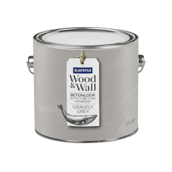 GAMMA Wood&Wall Betonlook in de kleur Gravely Grey 2,5 liter is een matte muurverf met betoneffect. Met deze verf creeër je eenvoudig een industriële look op muren en houten panelen. Breng betoneffect aan met een muurverfroller, blokkwast en een spaan. Wood&Wall Betonlook is ook verkrijgbaar in mengverf.