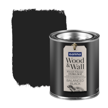GAMMA Wood&Wall Klassiek Extra Mat kleurtester in de kleur balanced black 100 ml is een zeer matte krijtverf met een verfijnde uitstraling en een geheel eigen effect. Het poedermatte effect komt tot in de kleinste detail tot zijn recht. GAMMA Wood&Wall geeft je huis de cottagesfeer van de Engelse countryside.