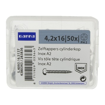 | Type(nummer) | 4,2 x 16mm a2 ck-ph rvs |