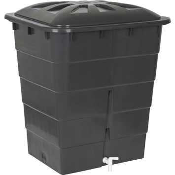 Deze praktische Garantia Regenton rechthoekig grijs 300 Liter heeft zoals de naam al zegt een handige vierkantige vorm en een inhoud van maar liefst 300 liter. Daar kun je aardig wat planten mee goedkoop water geven. De ton heeft een kindveilige deksel en een witte aftapkraan die je ook op een Gardena aan kunt sluiten. Deze grijze vierkante regenton is mooi compact en kan gemakkelijk tegen een muur geplaatst worden. De regenton heeft een breedte van 80 centimeter, een hoogte van 92 centimeter en een inhoud van 300 liter. Het materiaal van de waterton is vrijwel onverwoestbaar. Vorst, regen en dergelijke weersomstandigheden hebben geen vat op deze regenton, wel dien je de regenton leeg te maken bij vorstgevaar. Daarnaast bestaat de ton voor 75% uit gerecycled plastic en beschikt over 10 jaar fabrieksgarantie.