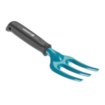 Het Classic bloemenvorkje van Gardena is ideaal om wortelvriendelijk te planten of verplanten in bloembakken, bloempotten en bloemperken. De vork heeft een ergonomisch gevormde handgreep die perfect in de hand past. De hoek aan het einde van de greep voorkomt wegglijden. Het vorkje heeft een breedte van 7,5 cm en is gemaakt van hoogwaardig staal en een duroplast coating voor extra lange levensduur.
