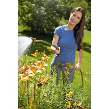 Met de Gardena Classic broes, voorzien van een verlengstuk, kunt u uw tuin op een zachte en nauwkeurige manier besproeien. De waterafgifte is traploos instelbaar en kan volledig worden afgesloten, zodat u deze kunt aanpassen aan de behoeften van uw planten. Handig is dat de besproeiing zowel handmatig kan worden bediend door de impulshendel in te knijpen, als vastgezet kan worden om vermoeidheid van de hand te voorkomen. De broes is uitgerust met innovatieve vorstbeschermingstechnologie en de zachte kunststof ring beschermt de broeskop tegen beschadigingen. Met een lengte van 75 cm is de Classic broes met verlengstuk vooral praktisch voor grotere gebieden, zoals bloemen- of groentebedden, omdat u de sproeistraal vanuit een staande positie langs de rand kunt bedienen.