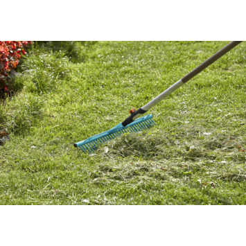 De Gardena combisystem gazonhark is ideaal voor het bijeenharken van bladeren, grasresten en ander tuinafval of om een zaaibed in je groententuin te maken. De 32 stevige tanden zijn gemaakt van hoogwaardig kunststof en beschadigen je gazon zo min mogelijk. Met een werkbreedte van 60 cm gaat het harken vlot. De gazonhark past op alle Gardena combisystem stelen (geadviseerde steel 180 cm, afhankelijk van jouw lengte). Je krijgt 25 jaar garantie op jouw Gardena combisystem gazonhark.
